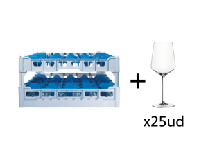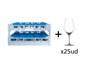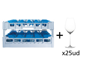 las copas se entregan ya colocadas en su rack de lavado , listas para usar y almacenar.